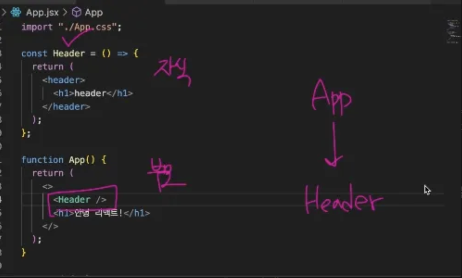다른 컴포는터의 return문 안에 포함될 경우 자식 컴포넌트이다.