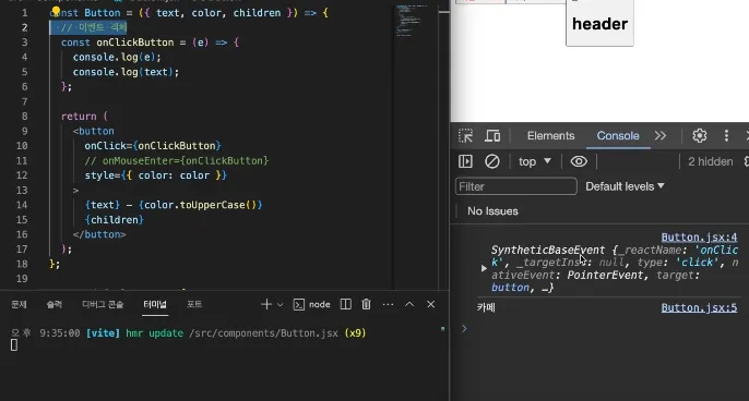 onClick onMouseEnter 이벤트를 등록했다
