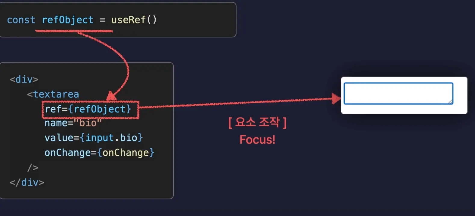 - DOM 요소 참조: 특정 DOM 요소에 직접 접근하거나 포커스를 설정할 때 사용합니다.