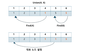 - 대표자를 통해 두 원소가 같은 집합에 속하는지 확인 가능